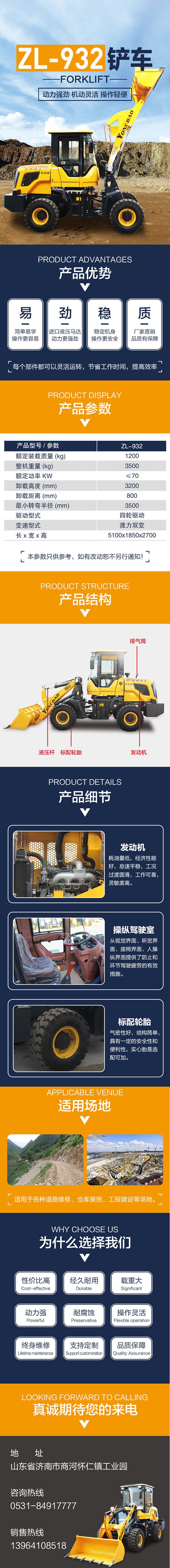 備注:ZL-932 裝載機,可加裝抓木機、托叉、叉車穩定器、推雪板、篩選斗等按照客戶要求制作。保質一年,上門服務。
